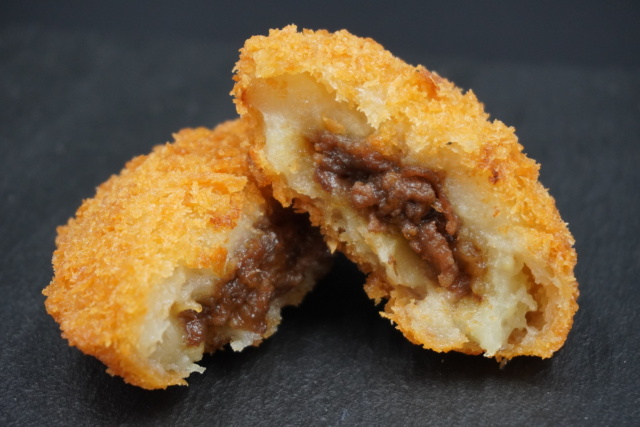 コロッケは、甘辛く仕上げた筑穂牛が入っており、ホクホクで美味しいです。